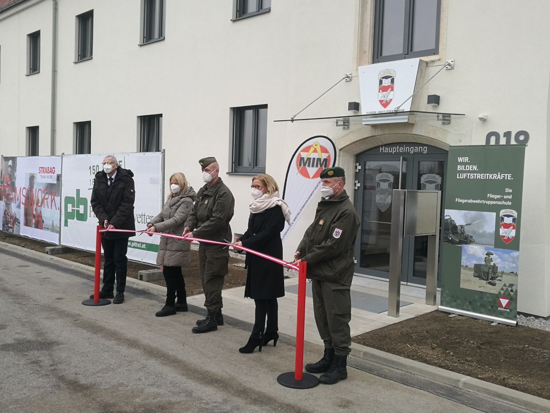 am fliegerhorst brumowski in langenlebarn fand am 15.01.2021 die feierliche eröffnung eines generalsanierten unterkunfts- und unterrichtsgebäudes in anwesenheit von verteidigungsministerin klaudia tanner und landeshauptfrau johanna mikl-leitner statt. im über 80 jahre alten gebäude wurden hochwertige quartiere für kursteilnehmer der flieger- und fliegerabwehrtruppenschule sowie moderne lehrsäle geschaffen.