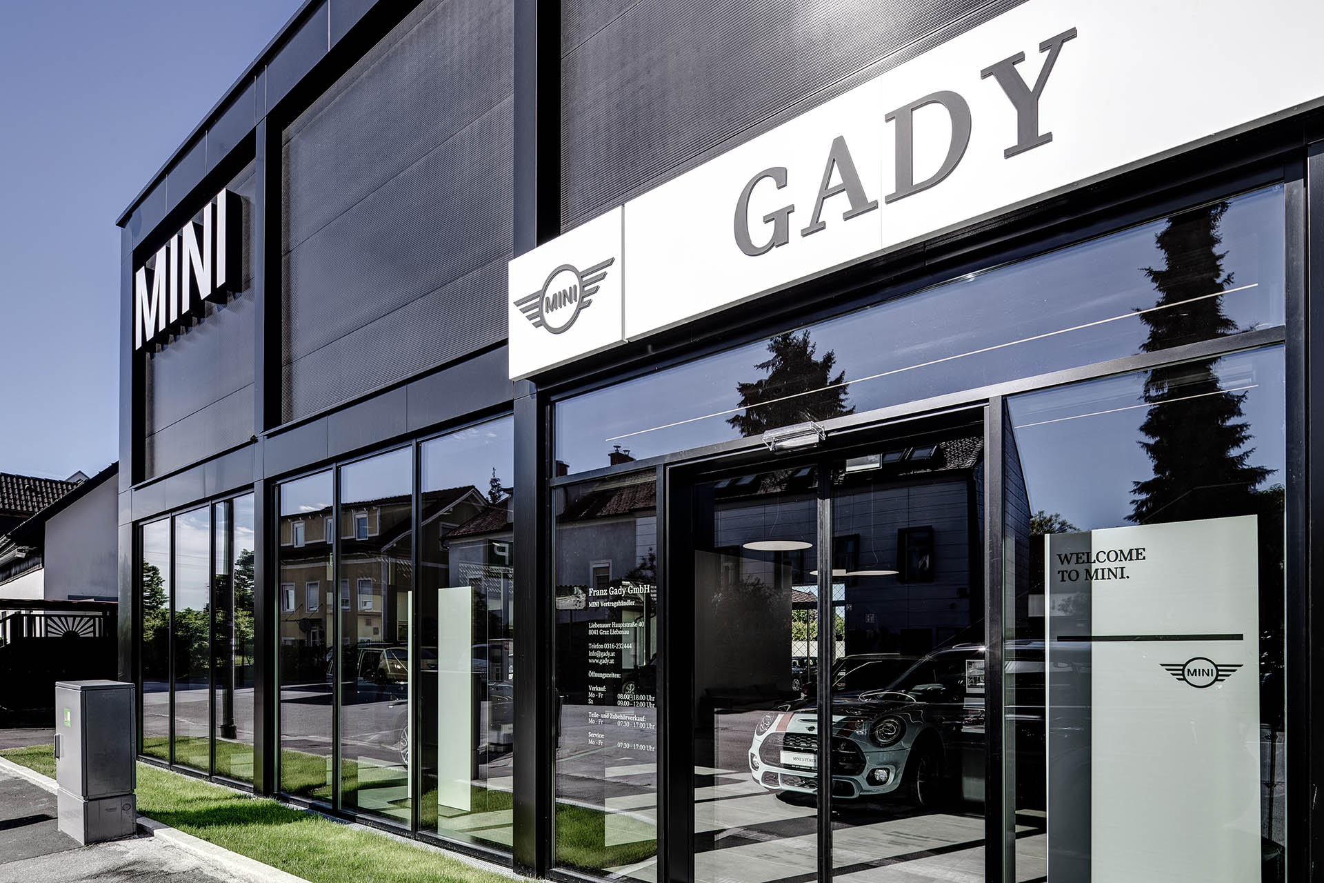 am 03. und 04.05.2019 fanden die eröffnungstage des neuen gady standorts mini graz in liebenau statt. die neue filiale stellt das derzeit modernste mini verkaufsgebäude in österreich dar und ist zusätzlich der erste stand-alone standort der britischen kultmarke. die feierliche eröffnung erfolgte unter anwesenheit zahlreicher verteter aus wirtschaft und politik. so ließen sich beispielsweise der grazer bürgermeister siegfried nagl und auch nicole koch, head of mini austria, den event nicht entgehen.