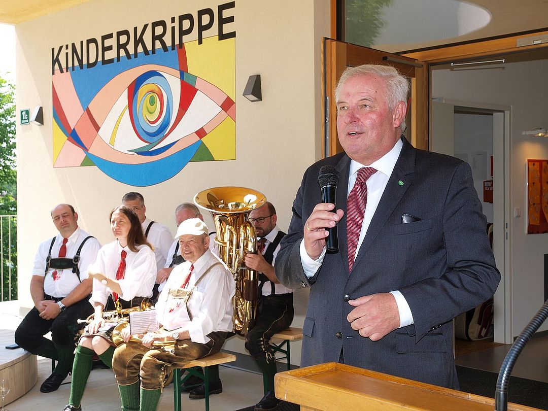 nach einer nur neun monate langen planungs- und bauzeit fand am 07.06.2019 die offizielle eröffnungsfeier der neuen kinderkrippe in st. veit in der südsteiermark statt. unter den zahlreich anwesenden ehrengästen konnte bürgermeister gerhard rohrer auch landeshauptmann hermann schützenhöfer begrüßen.