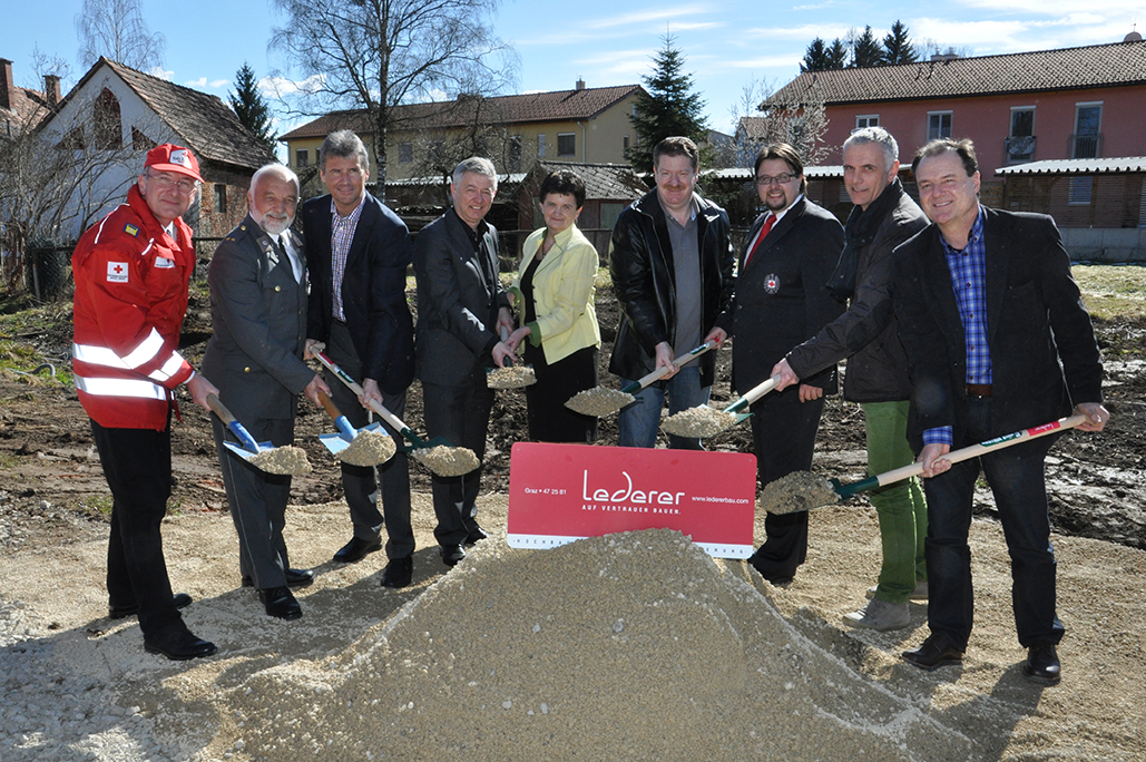 am 8. märz 2013 erfolgte der offizielle spatenstich für den neubau der aussenstelle des roten kreuzes in heiligenkreuz am waasen. das moderne, zweckmäßige gebäude wird in einer niedrigstenergiebauweise errichtet, wobei dem nachhaltigkeitsgedanken durch die solare warmwassererzeugung und beheizung mittels wärmepumpe und erdwärmesonden besonderer stellenwert eingeräumt wird. planconsort ist für die generalplanung des gesamtprojektes bis zur übergabe an das rote kreuz verantwortlich. nach einer kurzen bauzeit soll die inbetriebnahme der neuen rk-dienststelle, die ein einzugsgebiet von 6.200 einwohnern abdecken wird, bereits im herbst 2013 erfolgen.