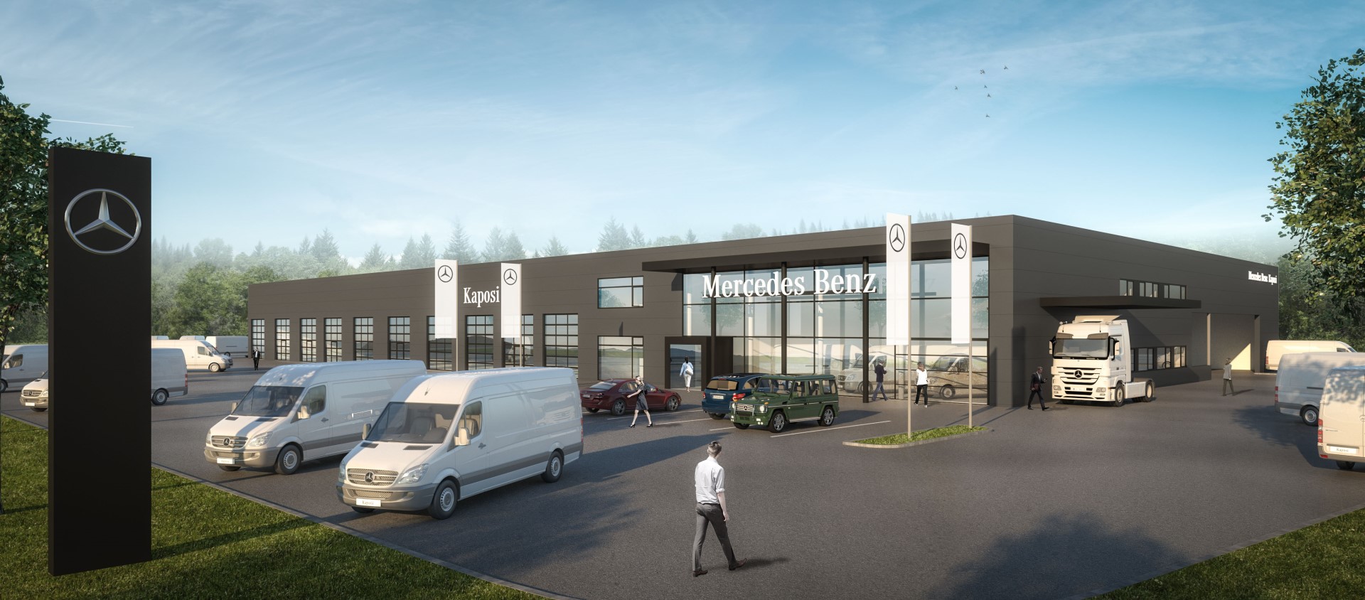 die kaposi nutzfahrzeuge gmbh errichtet in poggersdorf/kärnten einen neuen betriebsstandort mit büro- und verkaufsräumlichkeiten sowie werkstätten für mercedes-benz trucks und transporter. planconsort ist bei diesem projekt mit der generalplanung inklusive örtlicher bauaufsicht beauftragt. bevor die bauarbeiten tatsächlich starten, möchten wir eine erste visualisierung nicht vorenthalten.