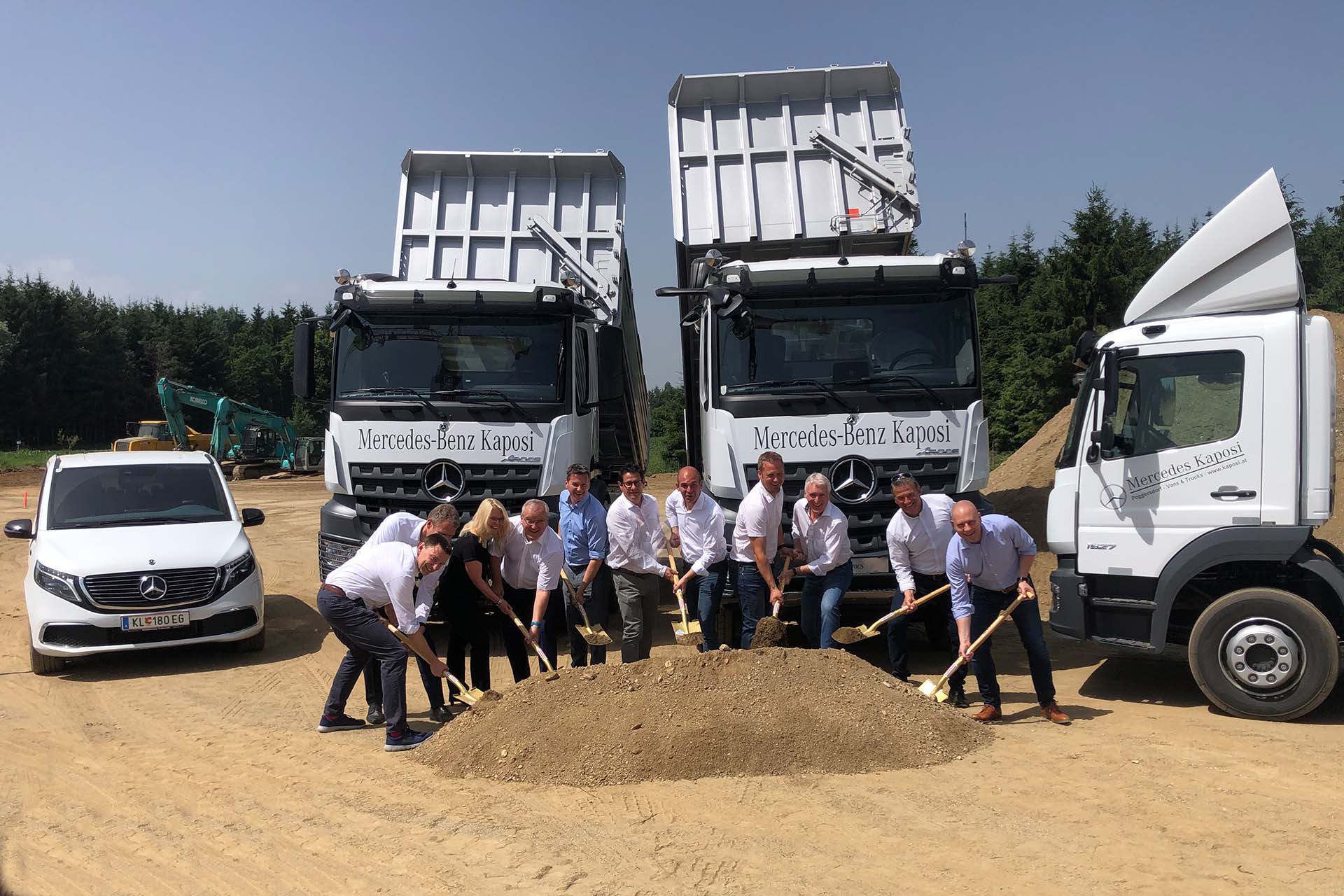 die kaposi nutzfahrzeuge gmbh errichtet auf einem rund 14.000 quadratmeter großen areal in poggersdorf/kärnten eine neue niederlassung für mercedes-benz trucks und transporter. knapp sieben millionen euro werden in den standort mit offenem showroom, werkstätte, tiefgarage, lackiererei, spenglerei und fotovoltaikanlage investiert.