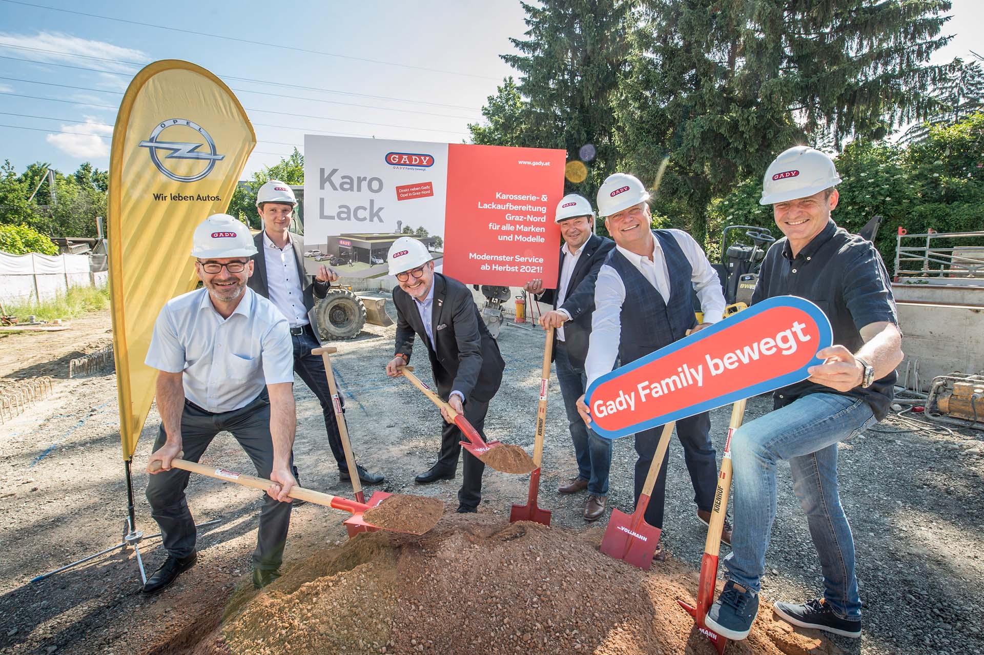 am 16.06.2021 erfolgte der feierliche spatenstich für das neue karosserie- und lackierzentrum der gady family in graz. mit diesem neuen standort in unmittelbarer nähe zu gady opel und gady bmw wird das filialnetz im norden von graz erweitert. neben einer lackierkabine nach modernstem stand der technik wird ein verarbeitungsplatz, ein finish- und annahmeplatz sowie ein annahmebüro inklusive kundenwartezone entstehen.