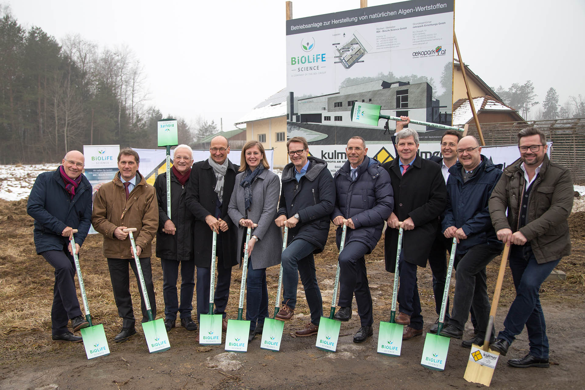 im auftrag des steirische spezialanlagenbauers bdi - bioenergy international ag entsteht im ökopark hartberg eine neuartige algen-reaktoranlage zur produktion von algenbiomasse als grundstoff für nahrungsergänzungsmittel sowie die pharma- und kosmetikindustrie. am 26.01.2018 wurde unter anwesenheit von vertretern aus politik und wirtschaft der spatenstich feierlich begangen.