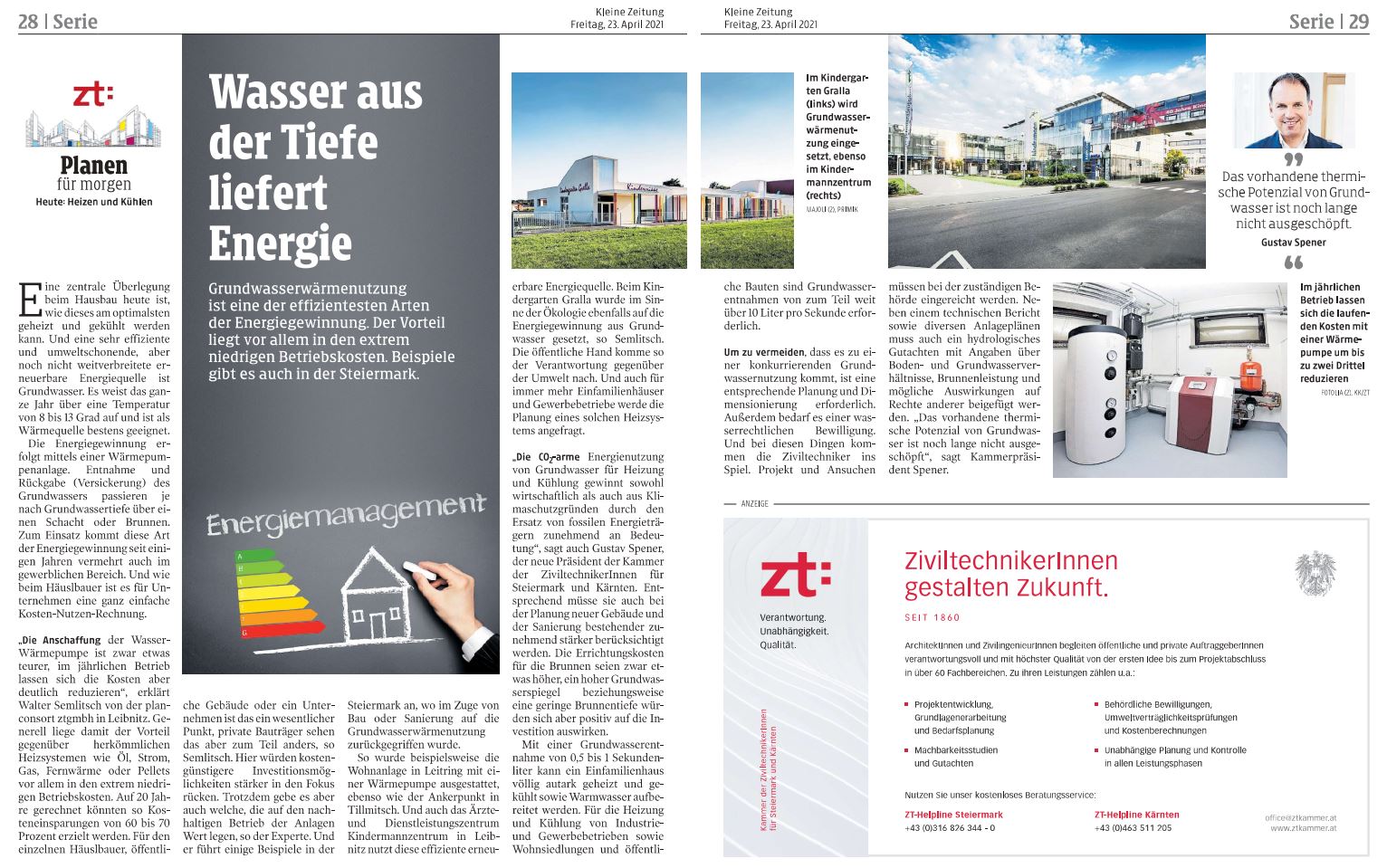 ende letzter woche ist in der kleinen zeitung ein artikel über grundwasserwärmenutzung erschienen. wir haben unser know-how und unsere erfahrungen aus realisierten projekten einbringen dürfen.den artikel zum download gibt es hier.